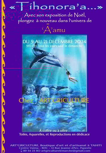 Exposition Personnelle « Tihonora'a » chez Art'griculture, Papeete Tahiti. Du 09 au 21 décembre 2024