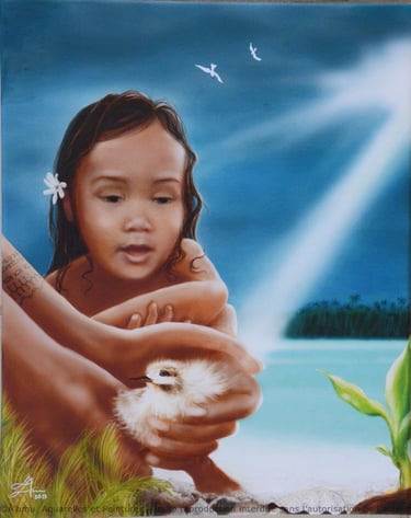Les peintures de 'Ā'amu souhaitent témoigner de la beauté, de la diversité mais aussi de la fragilité de la nature et du vivant des îles, en rappelant l'absolue nécessité de les protéger sous toutes leurs formes, sur terre, en mer et dans les airs, ainsi que de s'engager, tous, et dès le plus jeune âge, pour leur préservation.