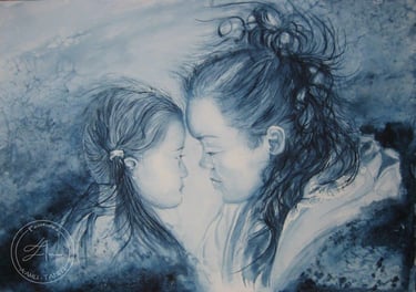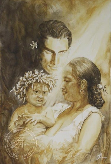 "Maupiti, mère & fils en 1938, et 75 ans + tard..." (Aquarelle 56 cm X 36 cm )2013