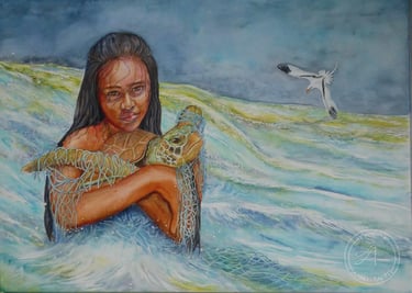 " Fa'aora Honu " (Aquarelle 76 cm X 56 cm )2021