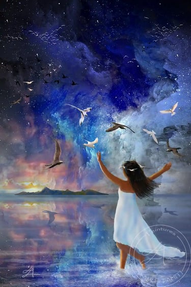Hina, revient, sous la protection des 'ōtaha... !" Acrylique sur toile (60 cm x 45 cm)2018