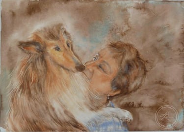 Le baiser (L'amour n'a pas d'âge) (Aquarelle 56 cm X 36 cm )2020