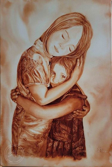 Entre douceur et soie brodée... les deux soeurs Aquarelle (100%coton - 56 cm X 36 cm) 2023