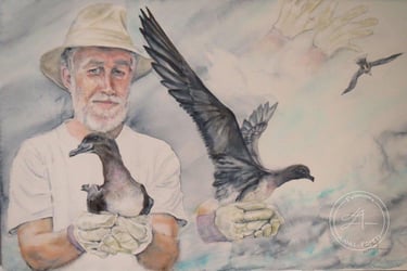 L'art de protéger et sauver les pétrels... (Aquarelle 56 cm X 36 cm )2015