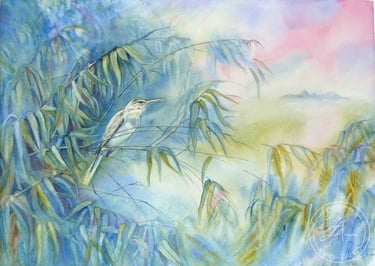 'Ōtātare Quand veille la Rousserolle...(Tahiti) (Aquarelle 56 cm X 36 cm )2013