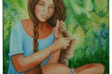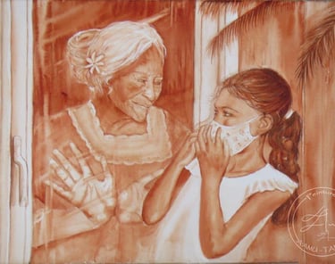 Pas à pas de l'aquarelle "Tous feti'i.." (= Tous de la même famille) Réalisée pour l'exposition Fa'aiho ta'u tufa'a au Musée des îles et de Tahiti en 2020