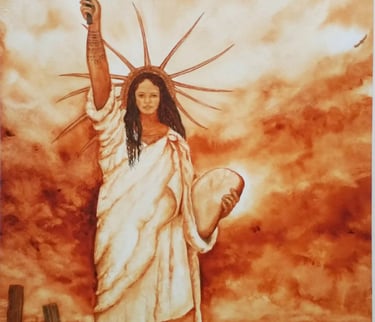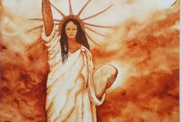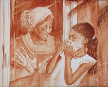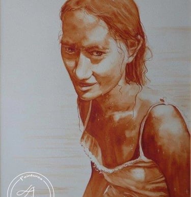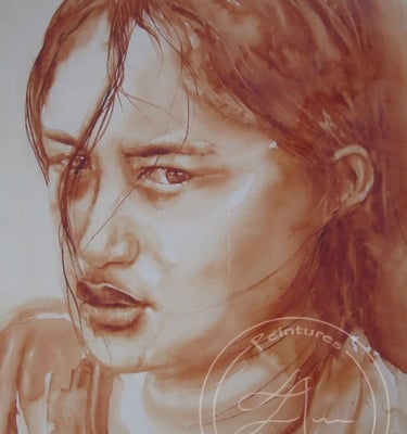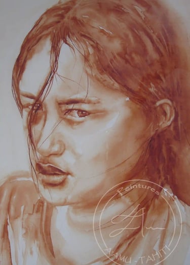Pas à pas de "Vahine TAPA encore gagné ta liberté ?" (2020) Aquarelle pour l'exposition Mona Lisa TAPA tout dit, World Art Day