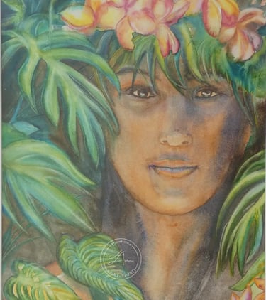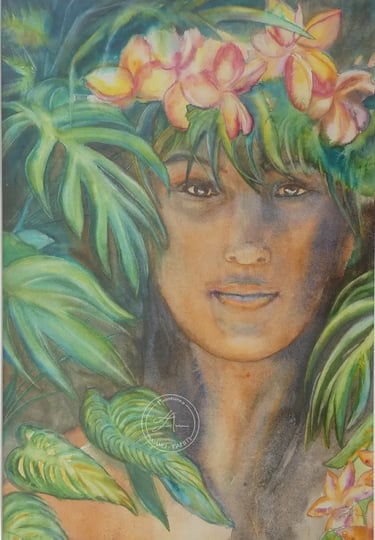 Instant démonstration d'aquarelle chez @artgriculturetahiti Exposition "Au fil des îles, Légendes et Rencontres" (2022)