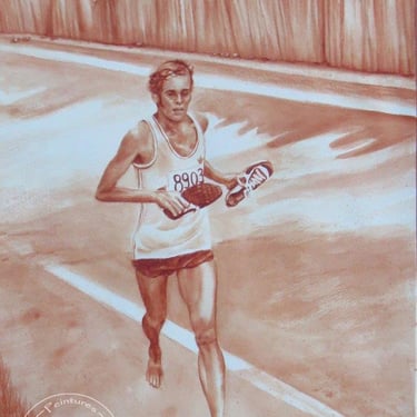 Fernand Chaves au Marathon de 1985 à Honolulu Aquarelle (100%coton - 56 cm X 36 cm) 2019