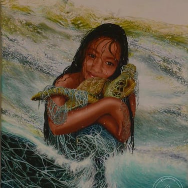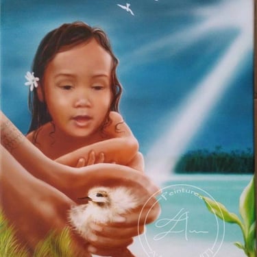 " Fa'aora honu ! " (Aquarelle 56 cm X 36 cm )2021