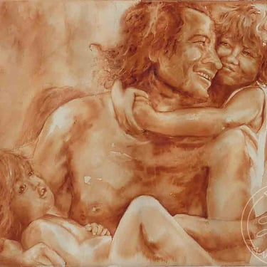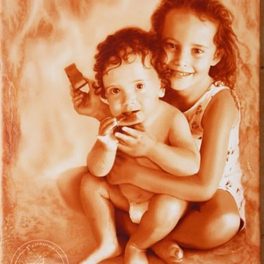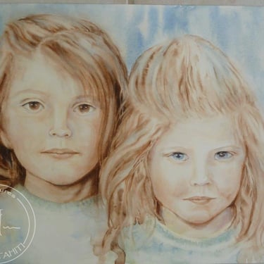 " Frère et soeur à Moorea " (Aquarelle 56 cm X 36 cm )2005
