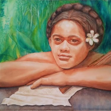 En toute simplicité.... (Rurutu entre 1936 1937) (Aquarelle (100%coton - 56 cm X 36 cm) 2003