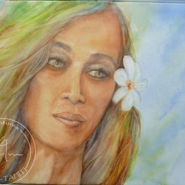 Dans le mana de Vahine... (Maupiti 2011) Aquarelle (100%coton - 56 cm X 36 cm) 2003