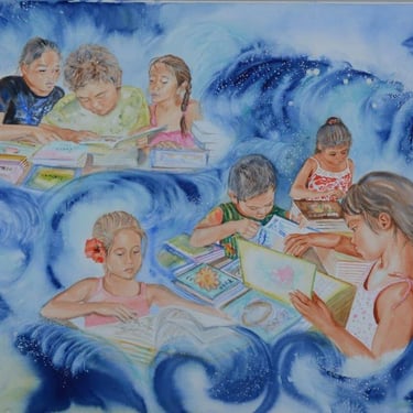 " Au salon du livre..." (Rimatara) (Aquarelle 56 cm X 36 cm )2015
