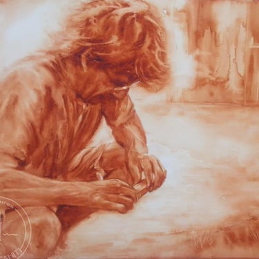" Leçon de Tapa (Fatu Hiva) (Sanguine sur papier Ingres 35 cm X 25 cm )2003