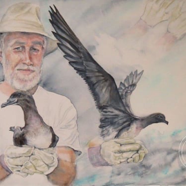 Sauver les pétrels...! Aquarelle (100%coton - 56 cm X 36 cm) 2015
