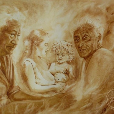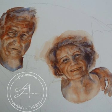 "Maupiti, mère et fils en 1938 et 75 ans + tard..." (Aquarelle 56 cm X 36 cm )2013