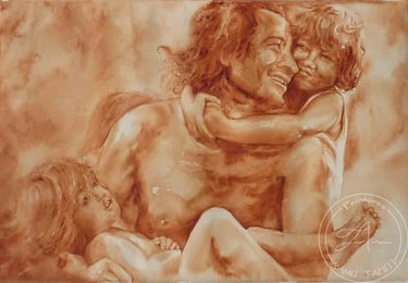 Henri Hiro et ses enfants... Aquarelle (56 cm x 36 cm) 2010