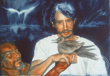 Opani here... (l'amour confiné...) Aquarelle (56 cm x 36 cm) 2020