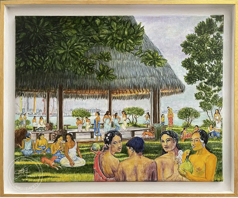 Maruapo, Koke i Paofai Au couchant, Gauguin dans les jardins de Paofai Acrylique sur toile (50cm x 40 cm) 2023