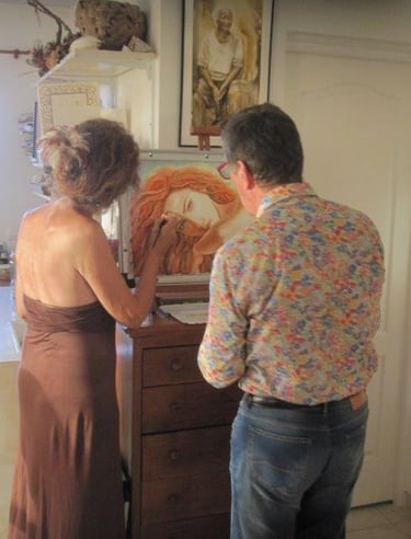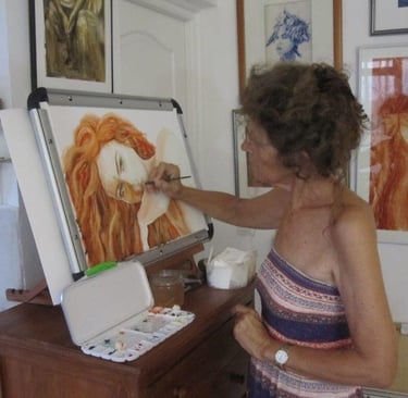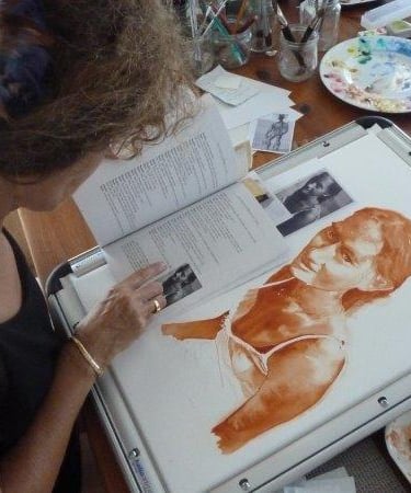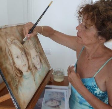 Et quand ce n'est pas possible, les photos feront l'affaire, bien sûr, mais elle en souhaite alors plusieurs, pour avoir une meilleure approche possible de la personne ou des personnes à peindre. Actuellement elle ne souhaite réaliser que des portraits à l'aquarelle.