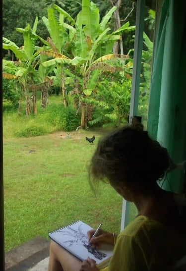 " Viv'eaux " Quand la magie du vivo peut faire onduler le monde... Aquarelle 76 cm X 56 cm. Réalisée pour l'exposition " Ecoh ", World Art Day, Tahiti 2022.