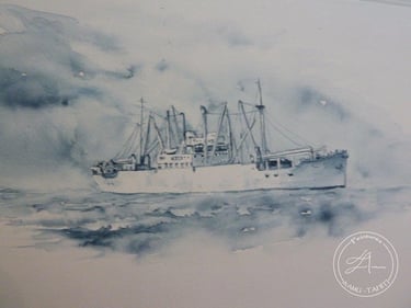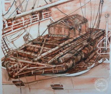 Le Kon Tiki à bord du Thor (2012) Aquarelle (100%coton - 20 cm X 20 cm)
