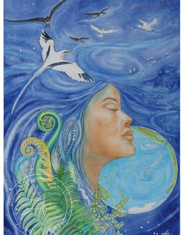 Après son évasion, le retour de Āa en Polynésie (2021) Aquarelle (100%coton - 56 cm X 36 cm)