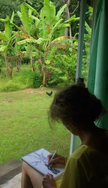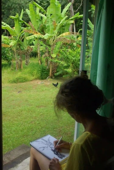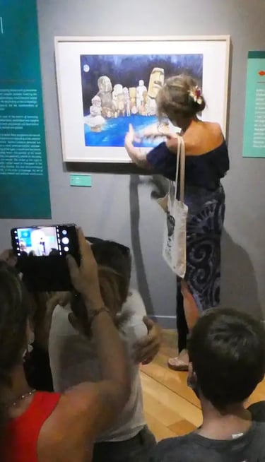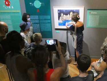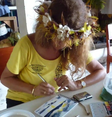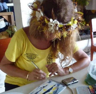 Retraitée de l'université, 'Ā'amu, se consacre désormais, en autodidacte passionnée, à ses peintures (le rêve d'une vie !). Elle a obtenu la carte d'artiste professionnel de Polynésie française en 2020.